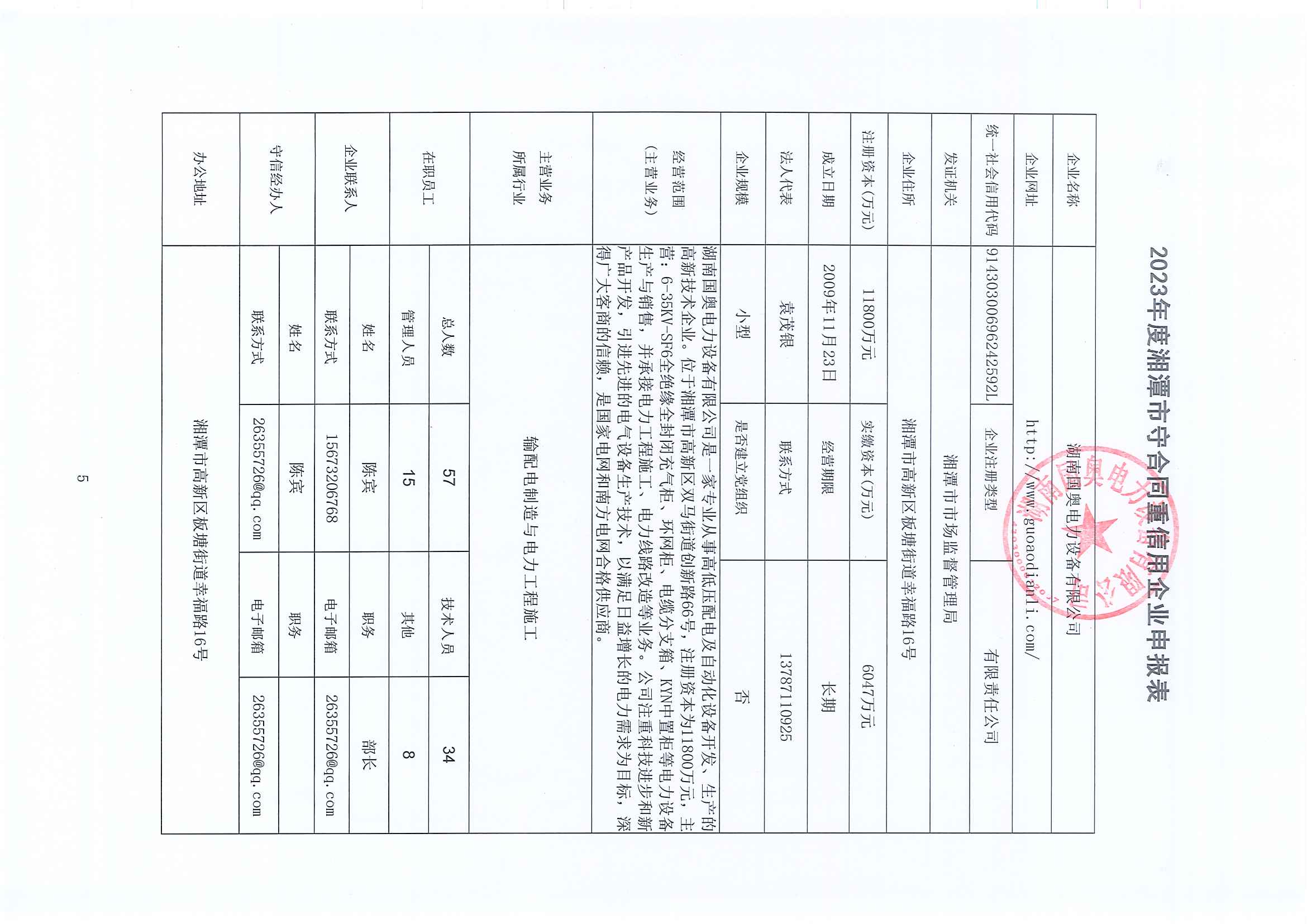 本企業(yè)根據(jù)《湘潭市守合同重信用企業(yè)申報(bào)規(guī)定》等編制 2023 年度企業(yè)信用報(bào)告書,并保證本報(bào)告書內(nèi)容真實(shí)、準(zhǔn)確、完整。